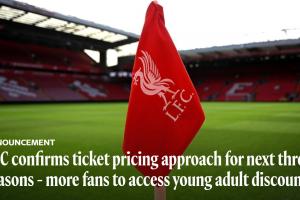 过去10个赛季中,利物浦有8次保持球票价格不变。此次调整后,成人普通门票每场每人涨价1.25至1.75英镑,成人季票下赛季上涨21.50至27英镑,折合每场比赛涨幅不超过1.42英镑。所有价格调整均以当年1月的消费者物价指数(CPI)年度通胀率为基准。以2026-27赛季为例,调价依据为截至2026年1月的过去12个月CPI通胀率,即3%。此外,未来三个赛季与CPI挂钩的年度涨幅最高不超过5%。
