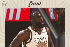 6+4+10!勇士发布赢球海报:封面为追梦格林怒吼瞬间