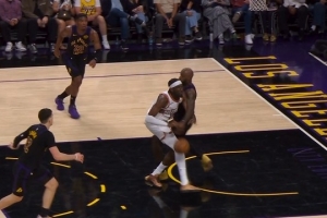 GIF-詹姆斯切掉马威的球被吹犯规,湖人挑战