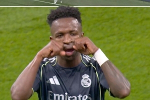 维尼修斯进球后做出“让你哭”庆祝动作,疑似回应曼城上赛季TIFO