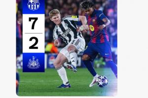 体育资讯03月19日讯 欧冠16强次回合,巴萨7-2总比分8-3狂胜纽卡。纽卡下半场泄气,后半场比赛变成了巴萨单方面的比赛。纽卡官方X除了在下半场开始时说了句“小伙子们全力以赴”后,除了发布换人信息,之后的时间变成了报分机器人。